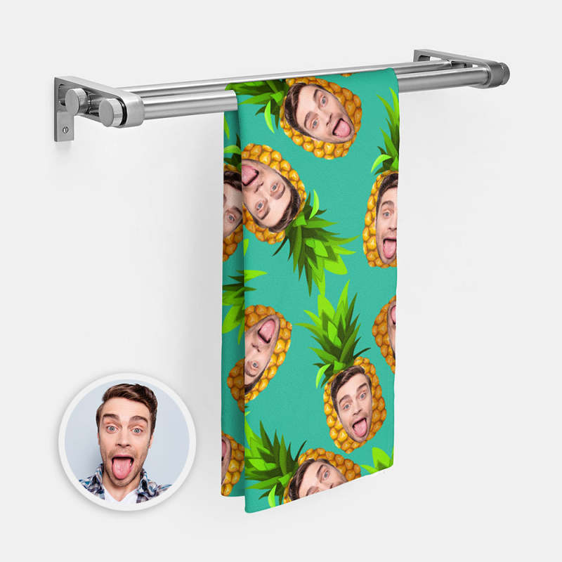 Custom Faces Pineapple Towel Personalized Photo Beach Towel Funny Gift