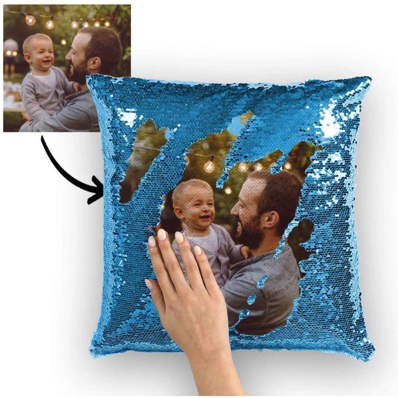 Custom Perfect Family Photo Magic Sequins Pillow Multicolor Shiny 15.75*15.75