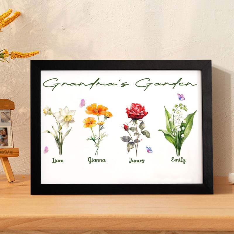Custom Grandma's Garden Wooden Photo Frame Personalized Birth Flower Mother's Day Gift