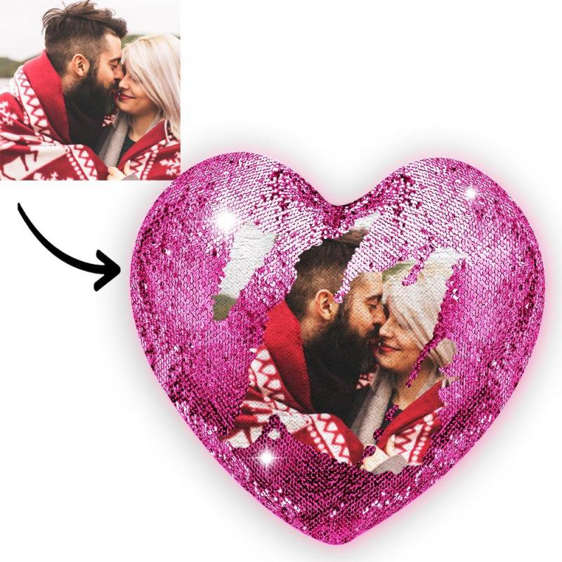 Custom Heart Photo Magic Sequins Pillow - Love