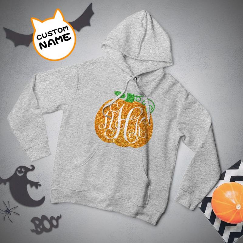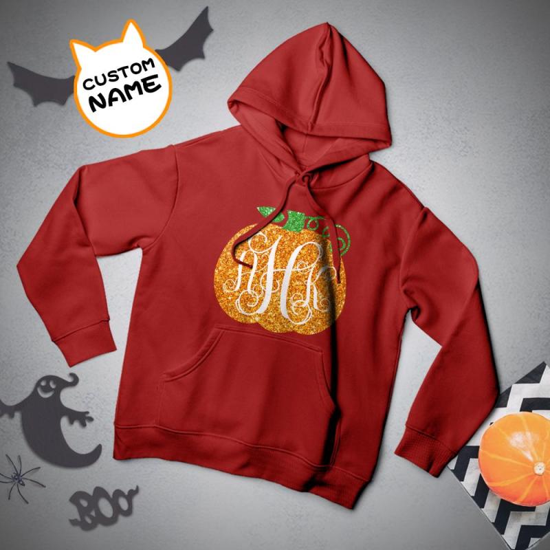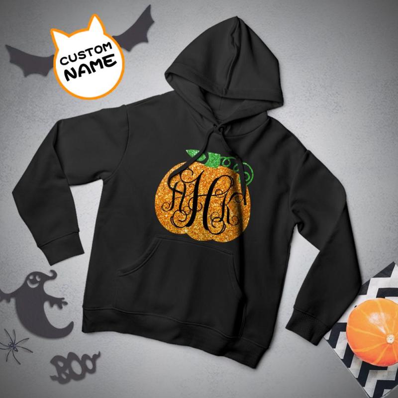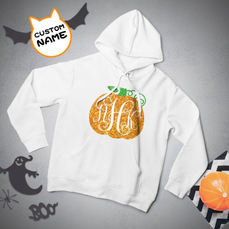 Custom Hoodie Long Sleeve Pullover Men's Hoodie Sweatshirt with Text Halloween Gift - Golden Pumpkin