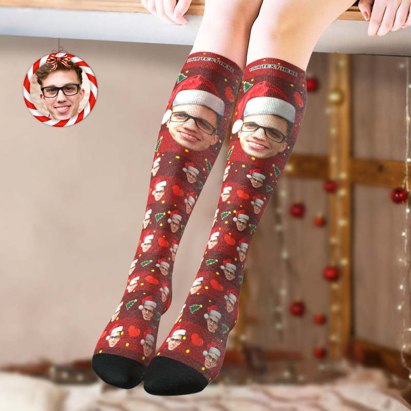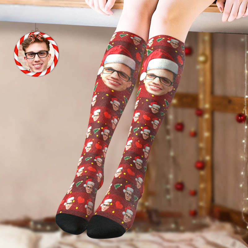 Custom Knee High Socks Personalized Big Face Christmas Socks Christmas Tree
