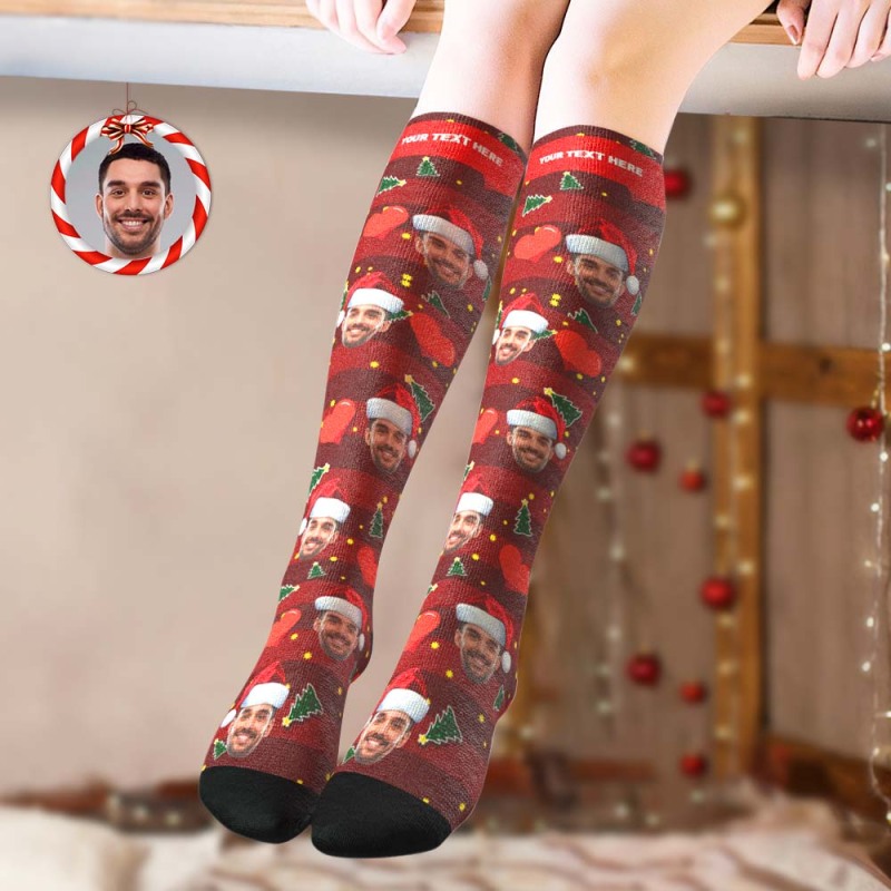 Custom Knee High Socks Personalized Face Christmas Socks Red Love