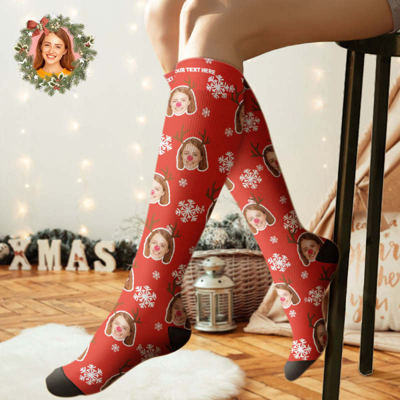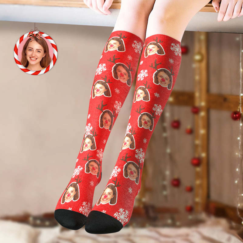 Custom Knee High Socks Personalized Moose Face Socks Christmas Gift