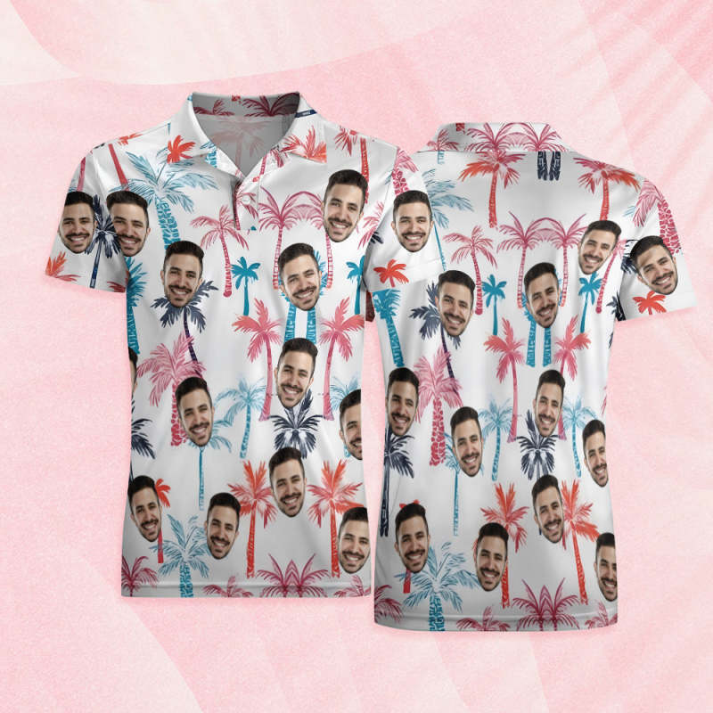 Custom Men's Hawaiian Face Polo Shirt Multicolor Coconut Tree Polo Shirt