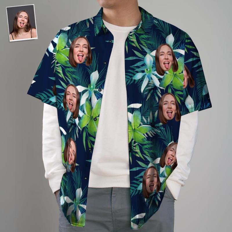 Custom Men's Hawaiian Shirt Dog Face Shirt Big Flower for Pet Lover