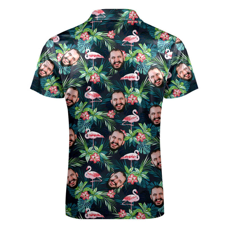 Custom Men's Polo Shirt with Zipper Personalized Face Hawaiian Style Polo Shirt