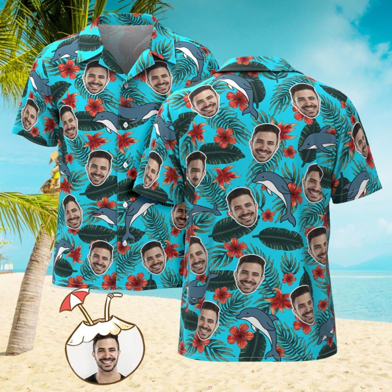 Custom Men's Shirt Face All Over Print Hawaiian Shirt Shark