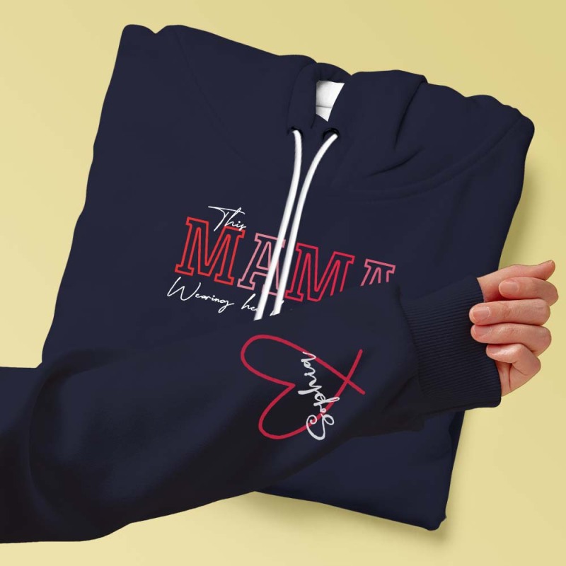 Custom Name Hoodie Personalized Hoodies Wear Heart On Sleeve Hoodie Mother's Day Gift