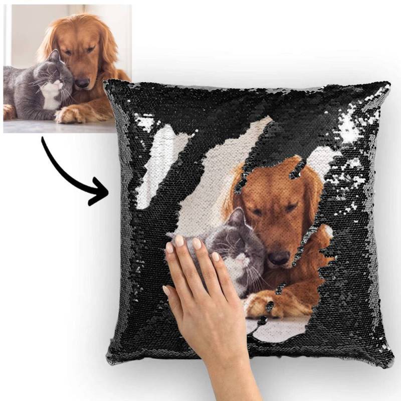 Custom Pet Photo Magic Sequins Pillow Multicolor Shiny 15.75*15.75