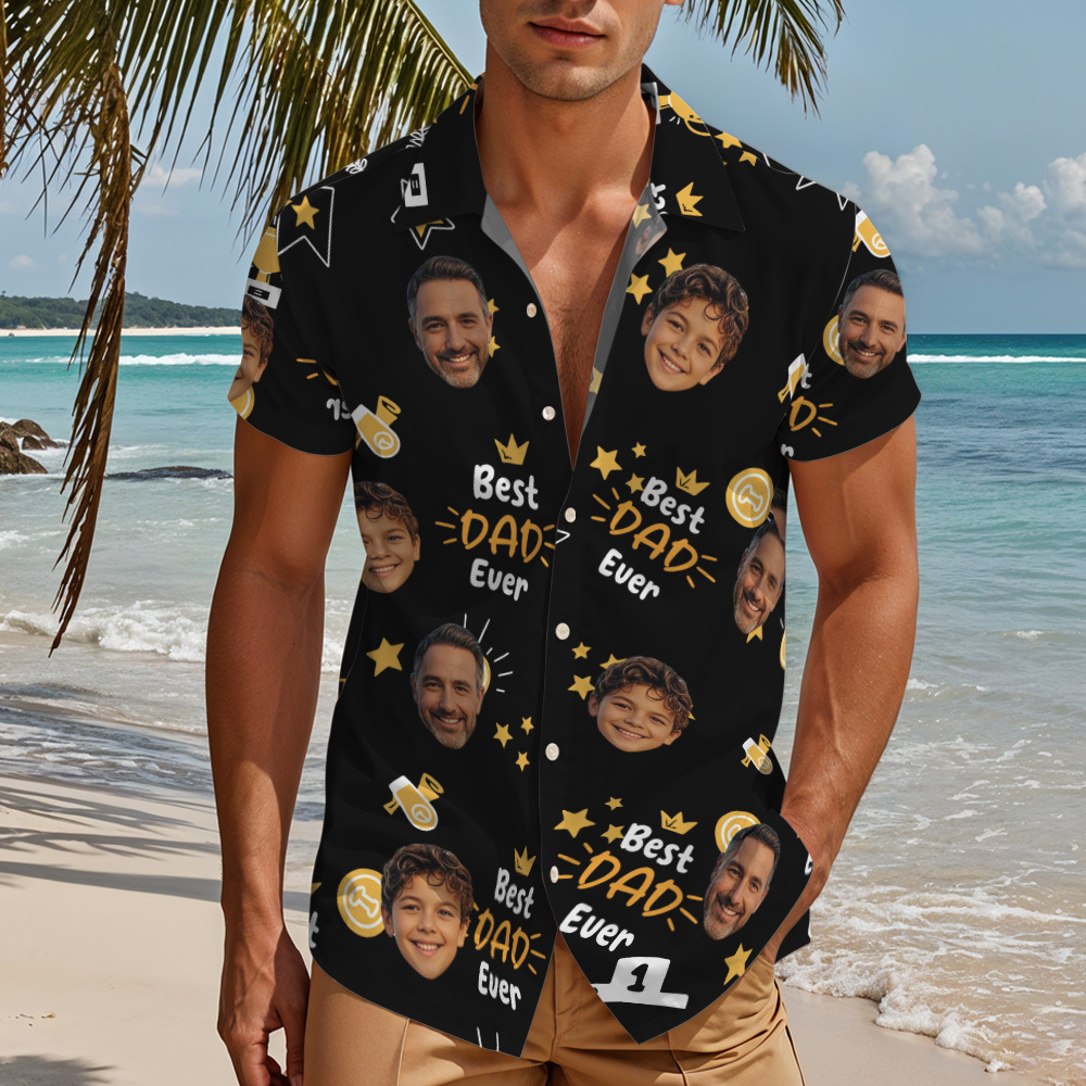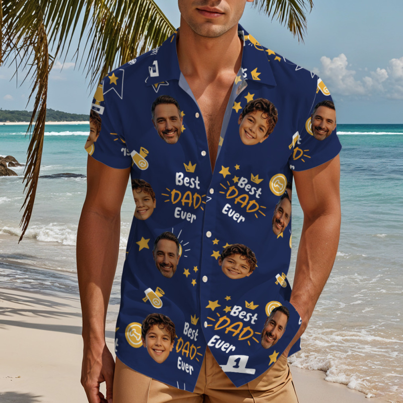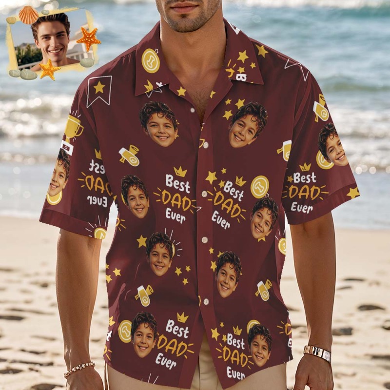 Custom Photo Best Papa Ever Trophy Dad - Personalized Hawaiian Shirt