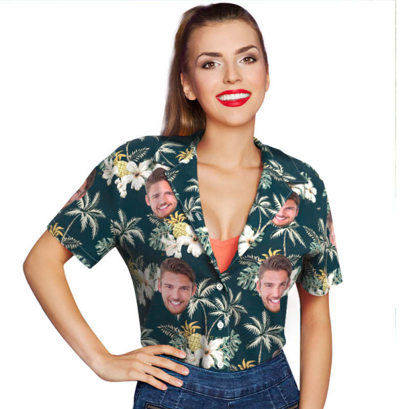 Custom Photo Funky Vintage Hawaiian Shirt Casual Button-Down Short Sleeve-For Her