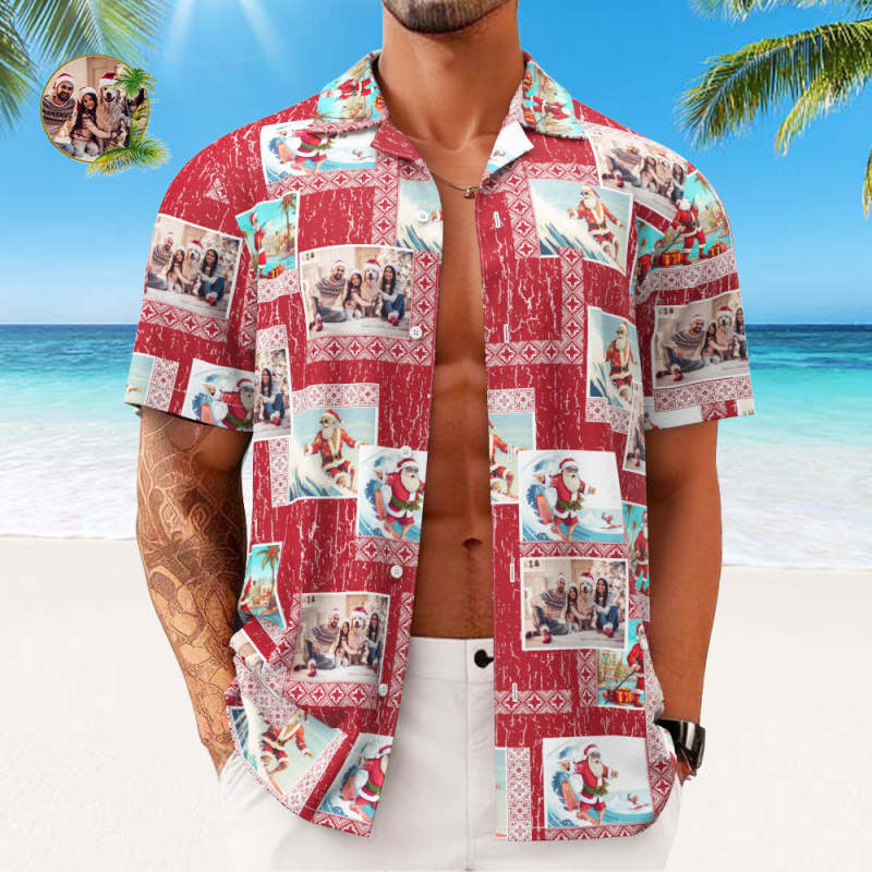 Custom Photo Hawaiian Shirts Personalized Photo Gift Men's Christmas Shirts Happy Family