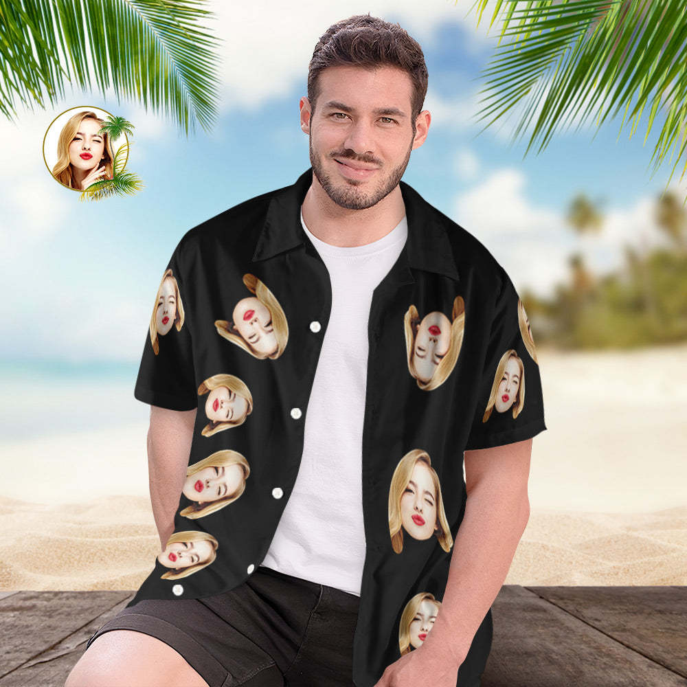 Custom Face Hawaiian Shirts Personalized Photos Funny Men's Shirt Gift Black