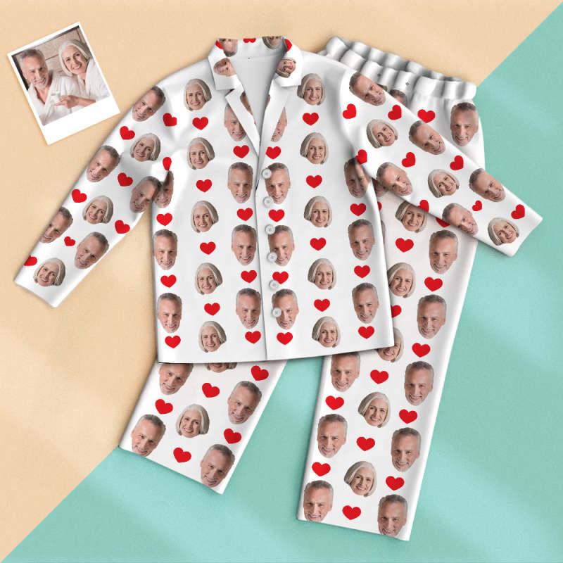 Custom Photo Long Sleeve Pajamas, Sleepwear, Nightwear Heart Grandparents' Day Gifts
