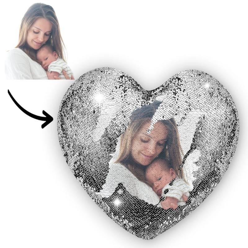 Custom Photo Magic Heart Sequins Pillow for Mom