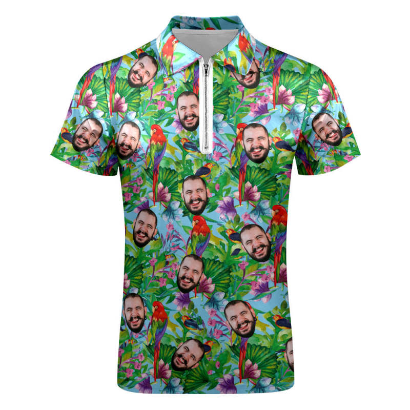 Custom Polo Shirt with Zipper Personalized Face Hawaiian Style Men's Polo Shirt for Him
