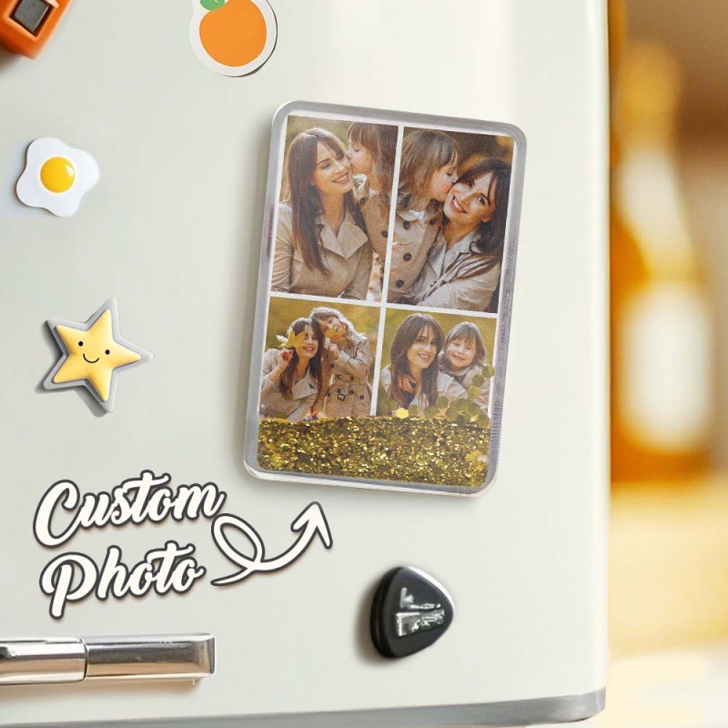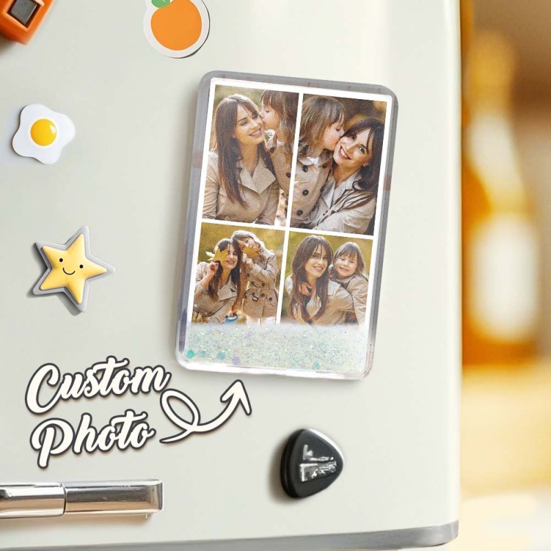 Custom Quicksand Fridge Magnet Personalized Photo Refrigerator Magnet Home Decoration Mother's Day Gift