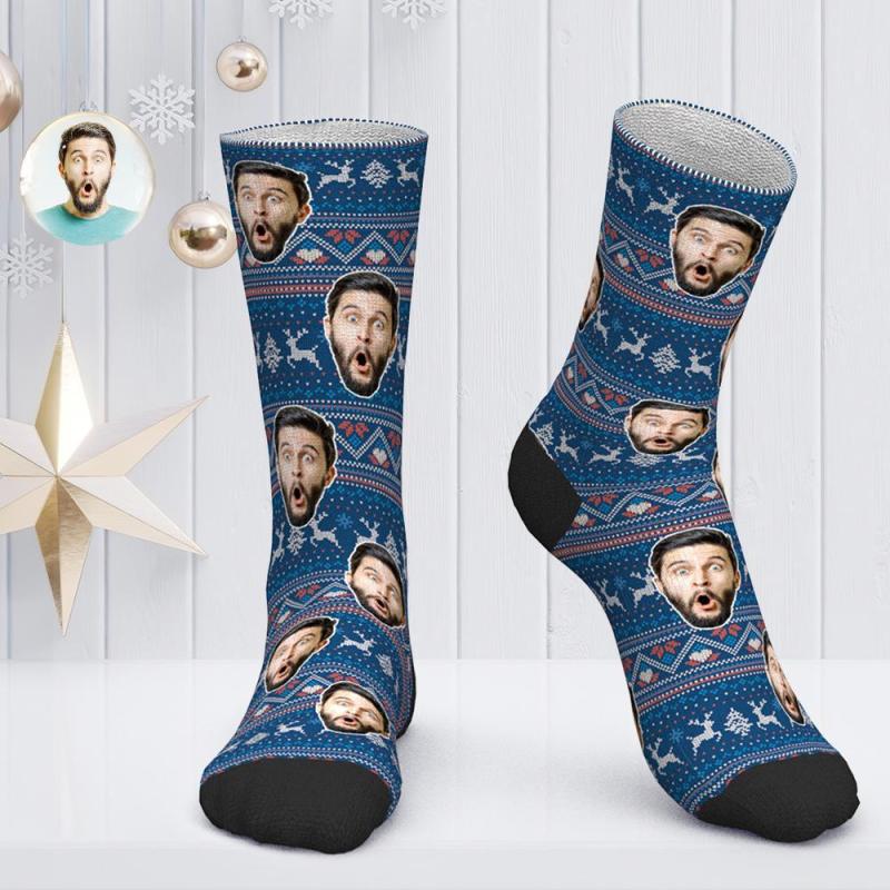 Custom Socks Personalized Photo Socks Christmas Socks Gift Santa Socks - Cute Elk