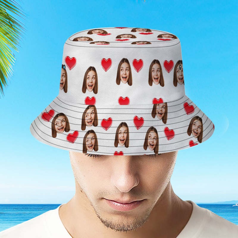 Custom Your Photo Face And Pet Summer Bucket Hat Fisherman Hat - Heart White