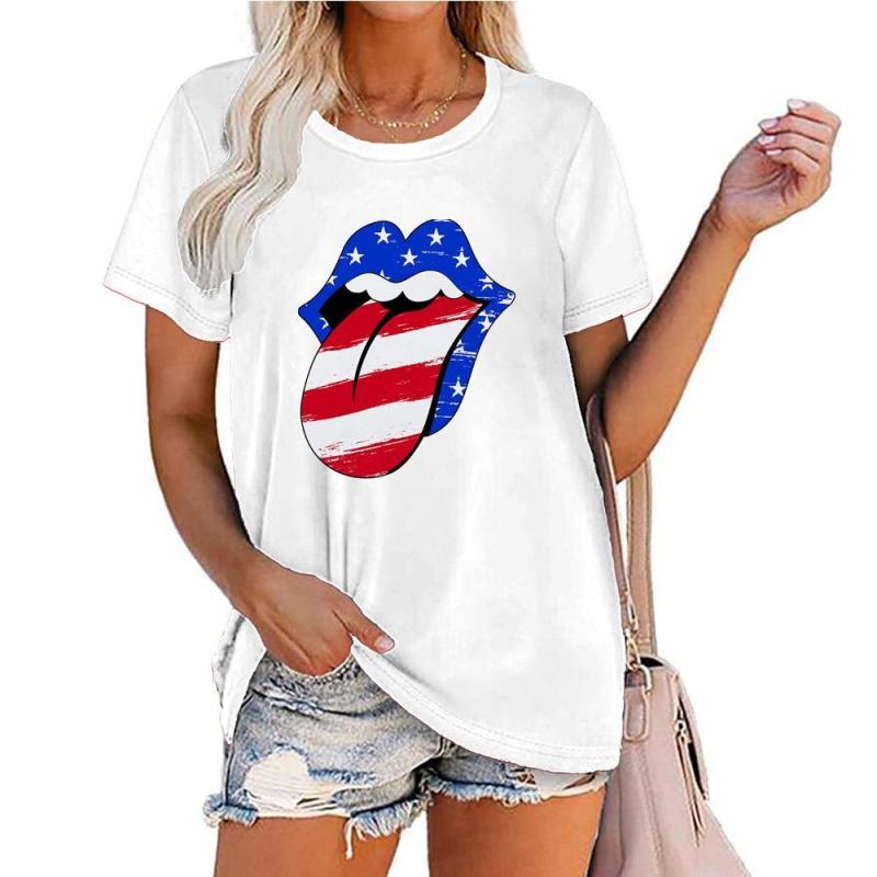 Flag tongue shirt July 4th Fourth of July shirt Band Shirt Rock and Roll Tongue lips shirt Bleached Style Shirt
