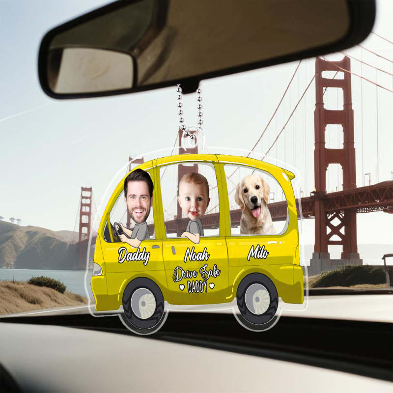 Funny Custom Photo Drive Safe Daddy Ornament For Car, Personalized Birthday Gift Idea for Daddy, Customized Baby Picture Acrylic Hanger
