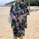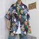 Hawaiian Shirts Print Leaves and Birds On Black Background Aloha Beach Shirts For Men
