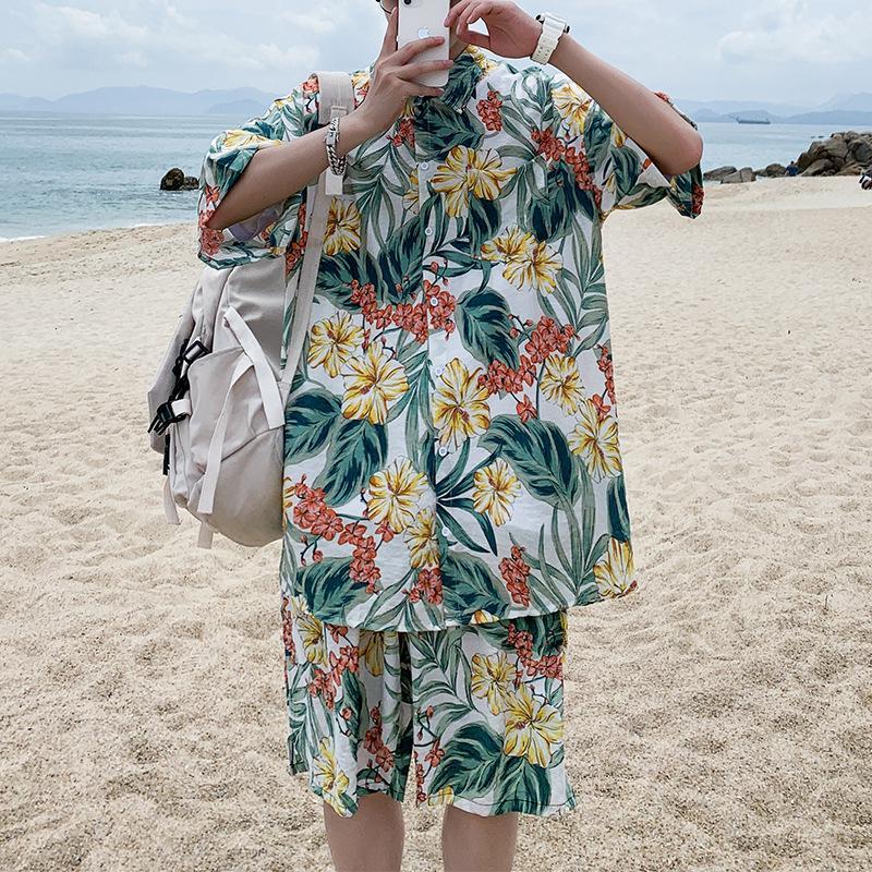 Hawaiian Shirts Print Leaves and Flowers On White Background Aloha Beach Shirts For Men