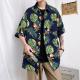 Hawaiian Shirts Print Tropical Leaves On Black Background Aloha Beach Shirts For Men