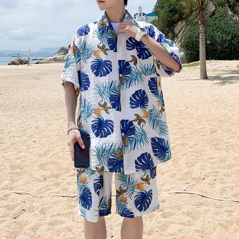 Hawaiian Shirts Print Tropical Leaves On White Background Aloha Beach Shirts For Men