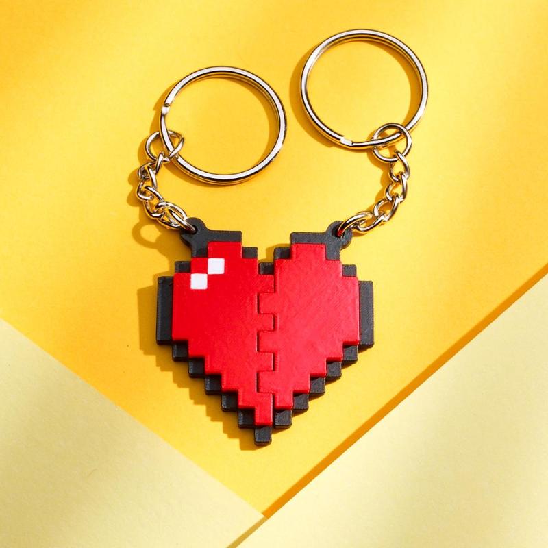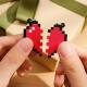 Couple Heart Shape Keychain Black and Red Pixel Block Keychain Anniversary Gift