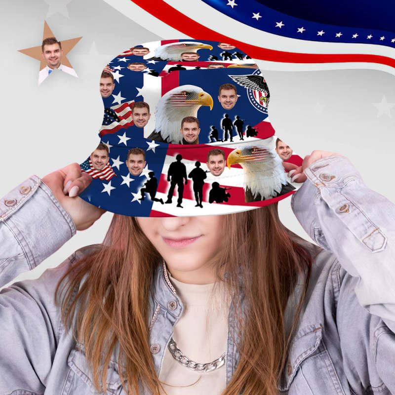 Independence Day Custom Bucket Hat Face Unisex Fisherman Hat Summer Hat - Bald Eagle