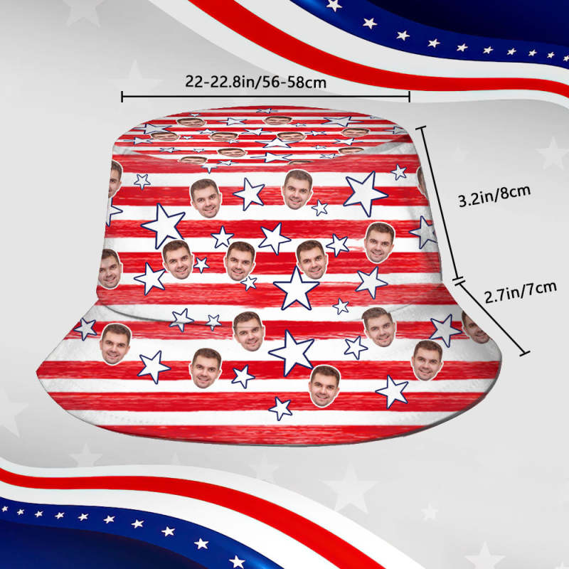 Independence Day Custom Bucket Hat Face Unisex Fisherman Hat Summer Hat - Red Hat
