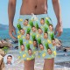 Men's Custom Face Beach Trunks Photo Shorts - Pineapple