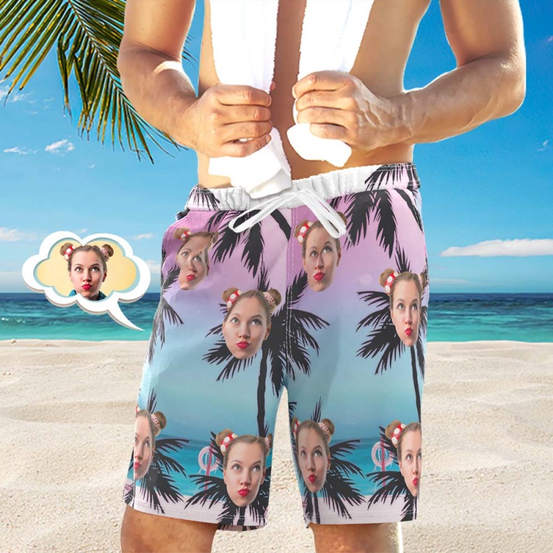 Men's Custom Face Beach Trunks All Over Print Photo Shorts - Palm