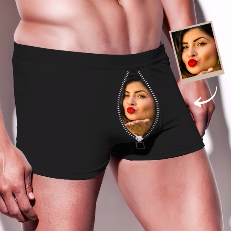 Men's Custom Face Boxer Brief Personalized Shorts with Girlfriend Face