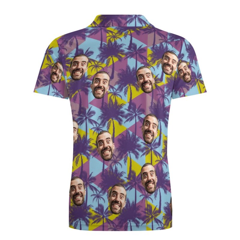 Men's Custom Face Polo Shirt Colorful Coconut Trees Personalized Hawaiian Golf Shirts