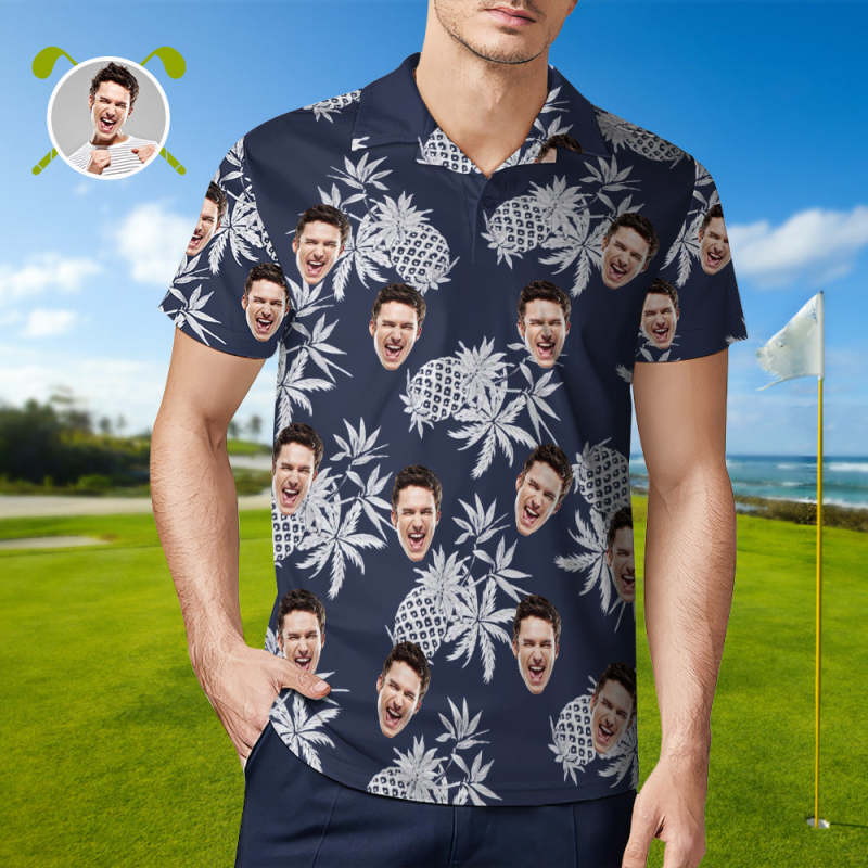 Men's Custom Face Shirt Personalized Golf Shirts For Him Vintage Pineapple