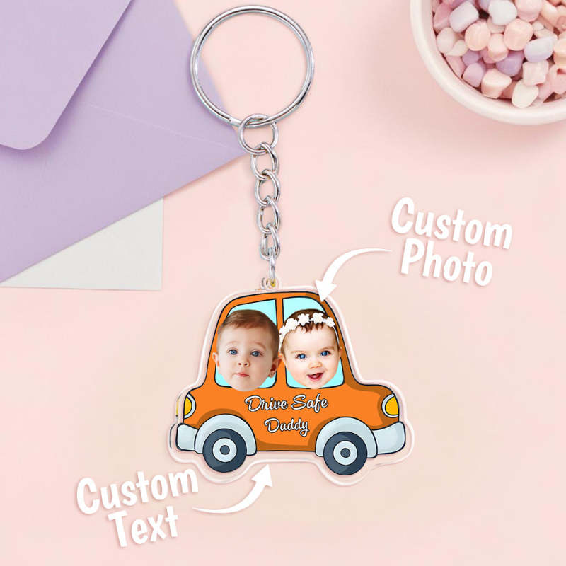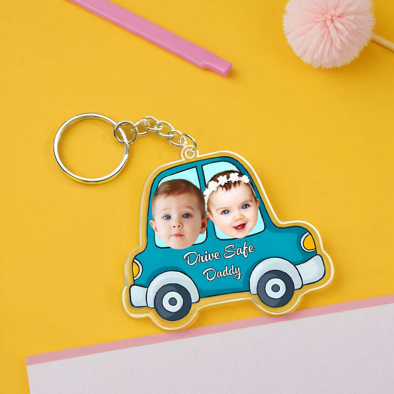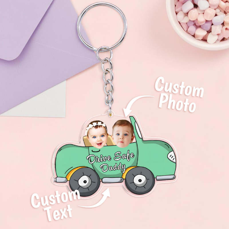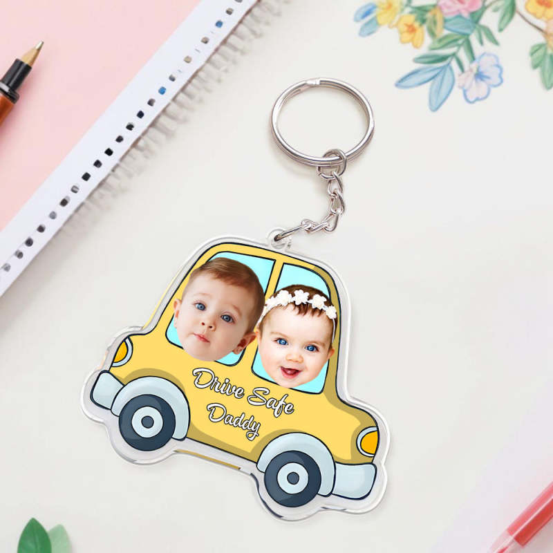 Personalized Face Acrylic Keychain Drive Safe Daddy Father's Day Gifts