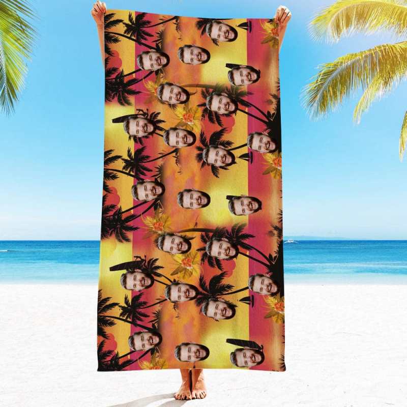Personalized Beach Towels with Photo Custom Sunset and Coconut Trees Beach Towel