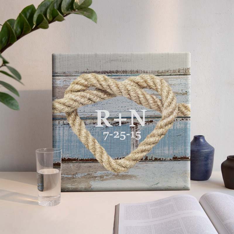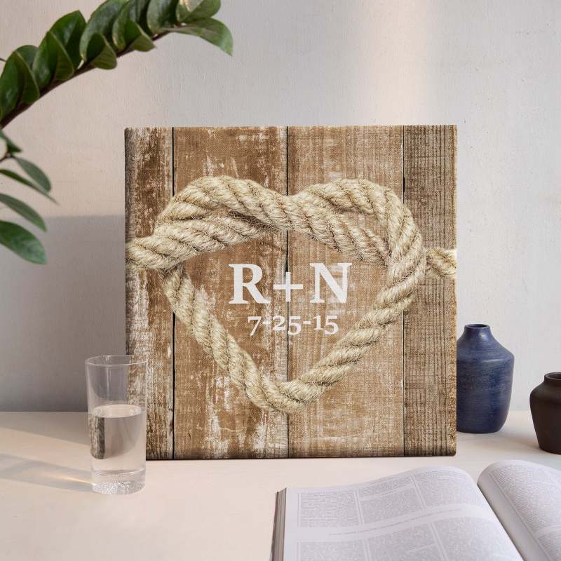 Custom Text Canvas Print Heart Shaped Knot Design With DIY Frame Anniversary Gifts For Lovers