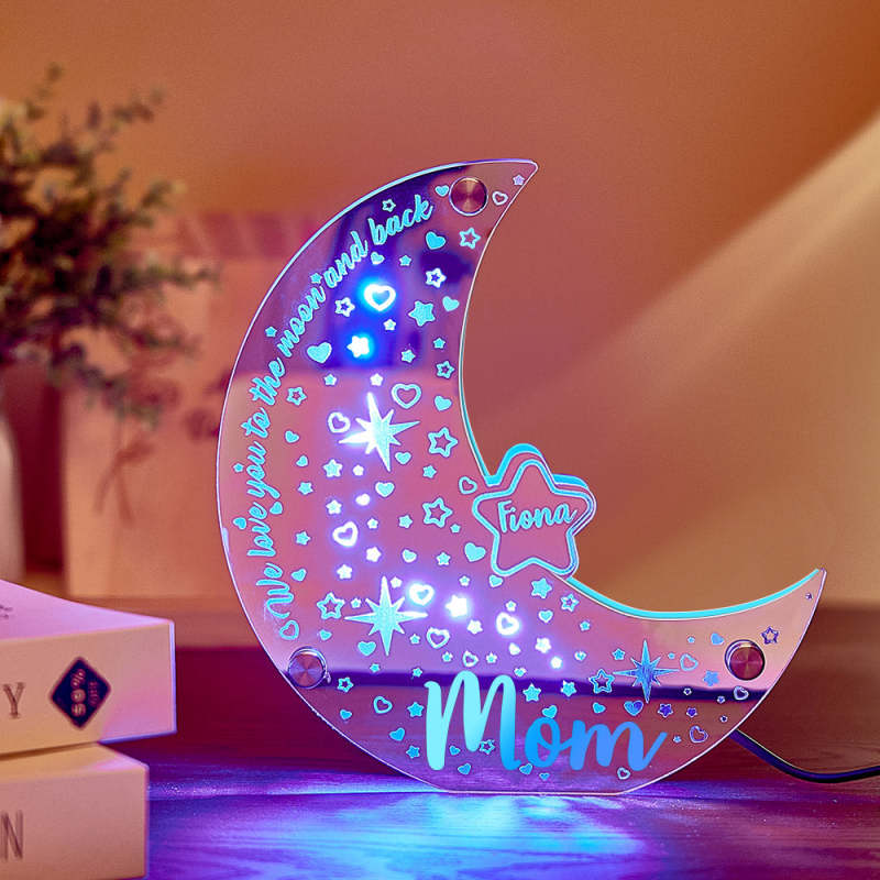 Personalized Name Moon Mirror Light Custom Family Member Name Mirror Light Gift for Mom