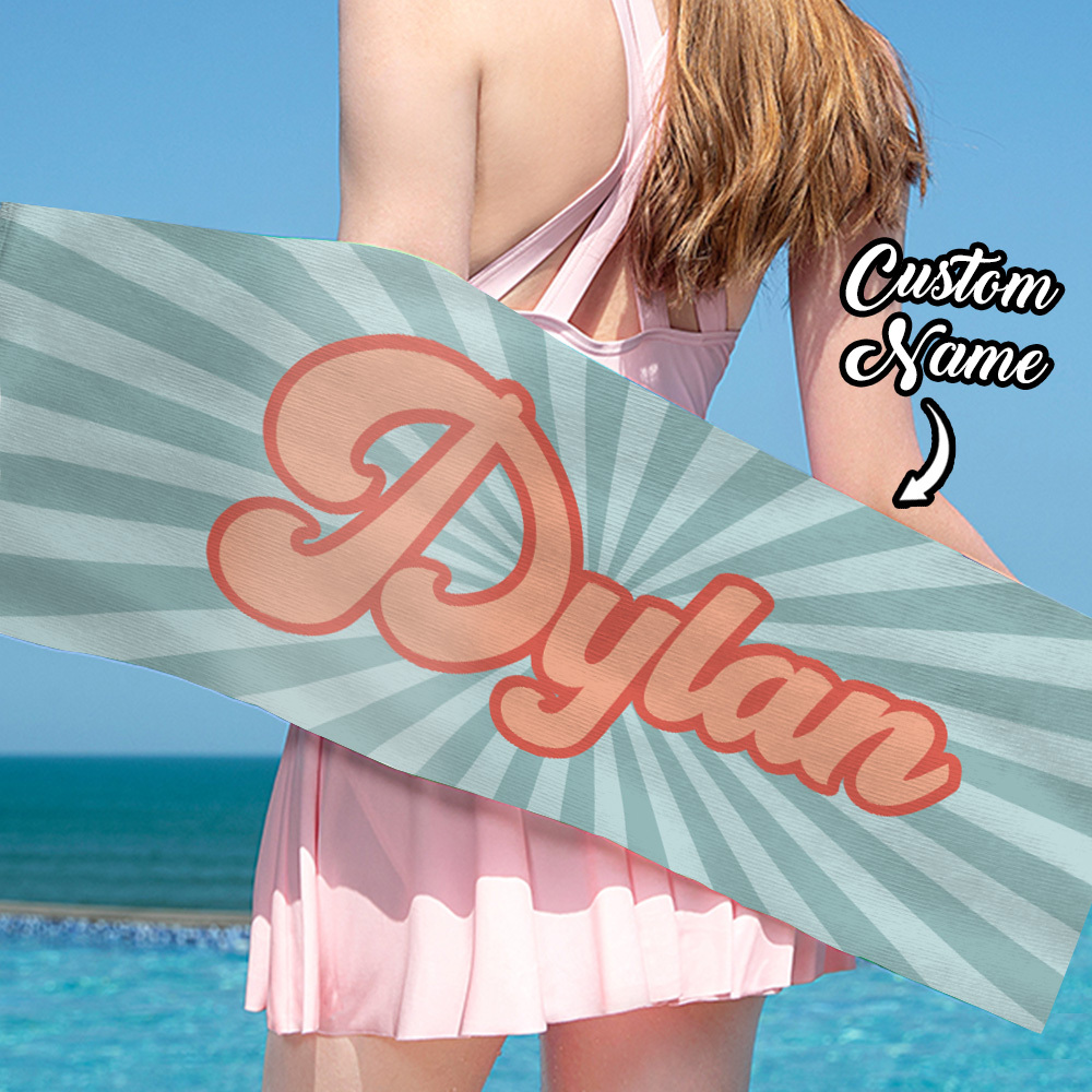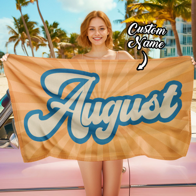 RETRO Style Personalized Beach Towel Personalized Name Bath Towel Custom Beach Towel With Name Outside Birthday Vacation Gift