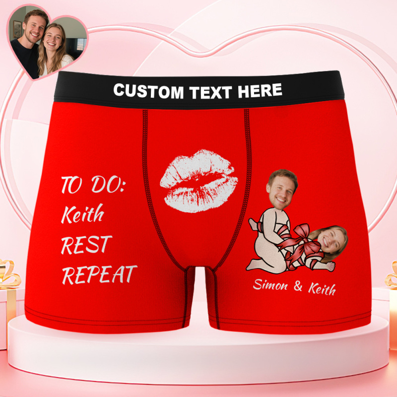 Valentine's Day Gifts Custom Face Men's Underwear Couple Love Style Boxer Briefs Birthday Gifts for Husband Waistband Text Boxers