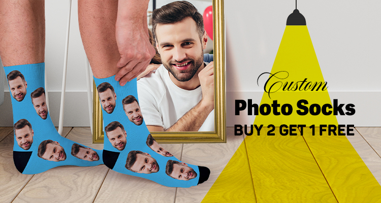 Custom Face Socks With Text -Put Any Face on Socks Gifts for Him