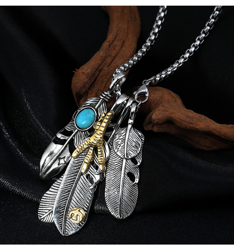 Feather Pendant Necklace Men's Trendy Personality Fashion Nightclub Europe and the United States Hip-hop Street Jewelry