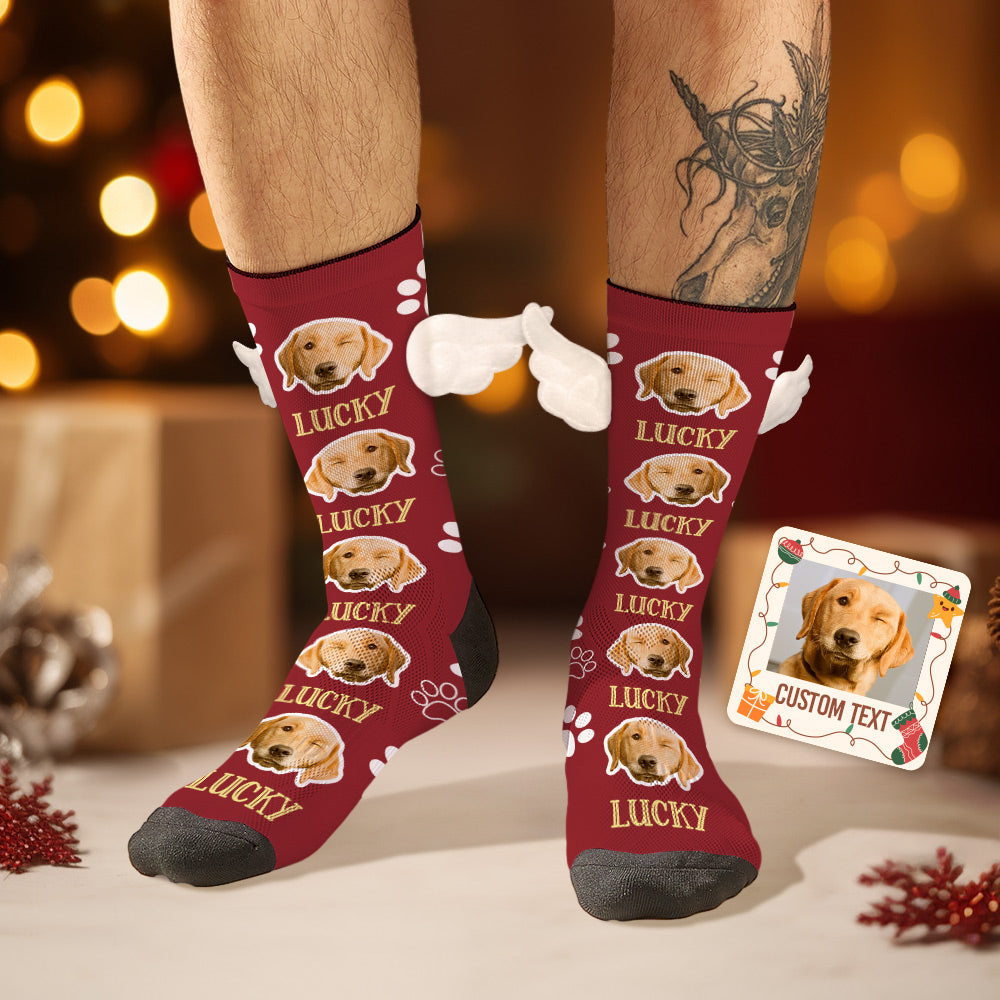 Custom Dog Face Socks 3D Magnetic Wing Socks Christmas Gifts