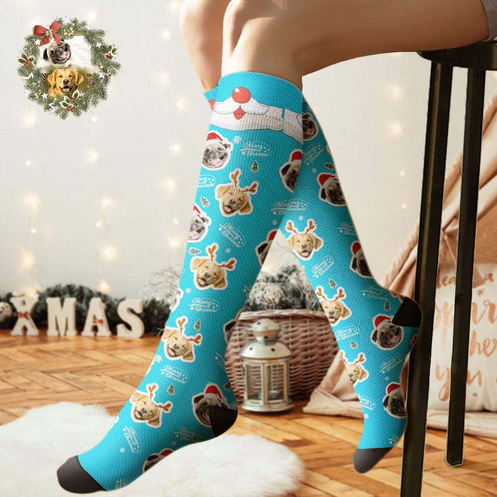 Custom Knee High Socks Personalized Face Socks Merry Christmas Dog Face for Pet Lover