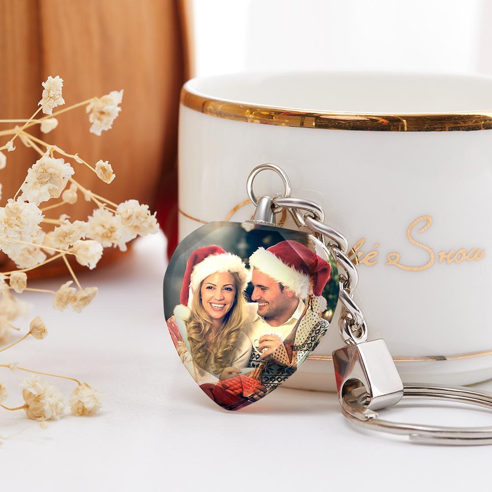 Custom Heart Crystal Keychain Photo Keychain Christmas Gifts For Lover