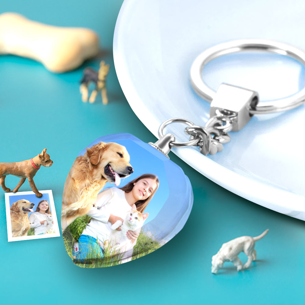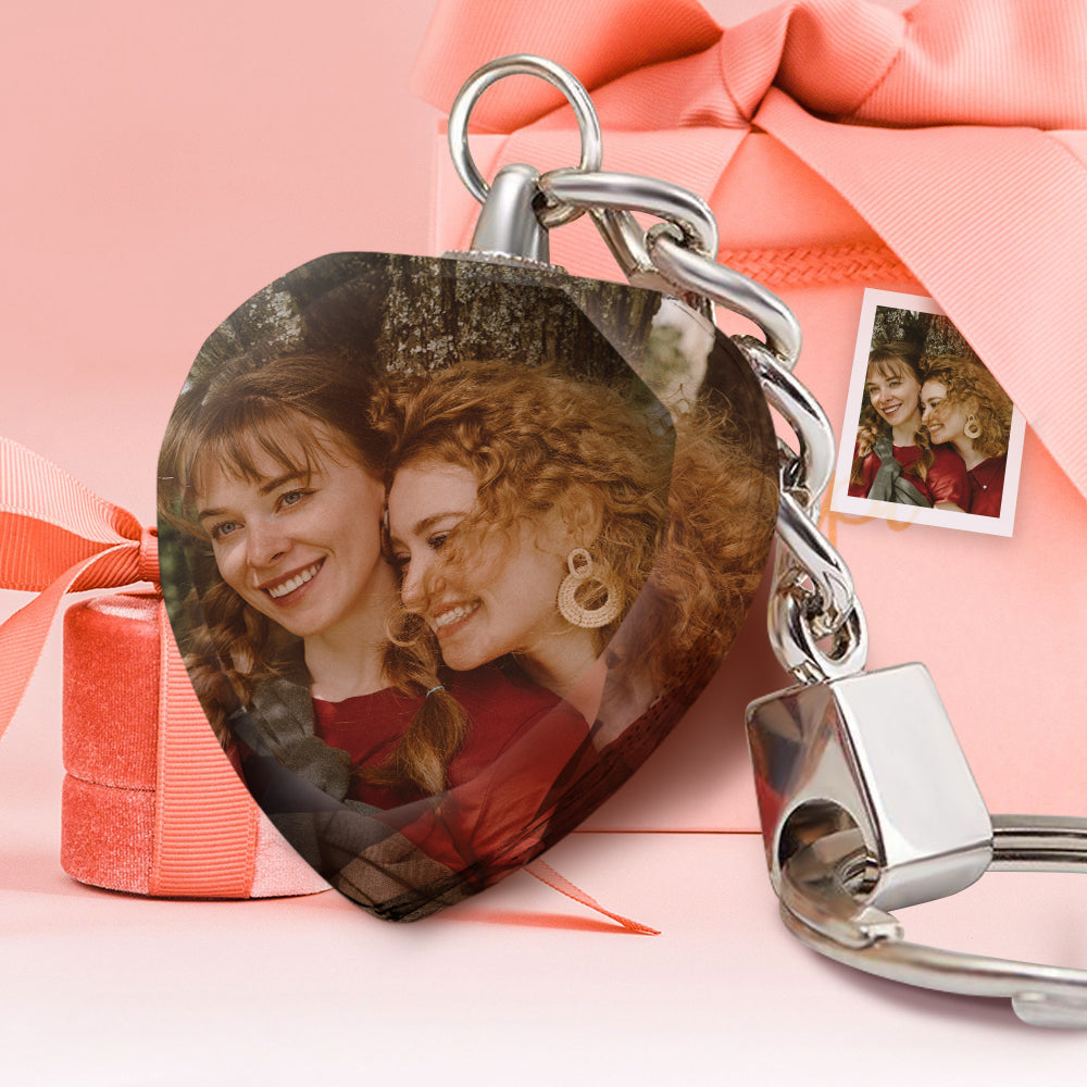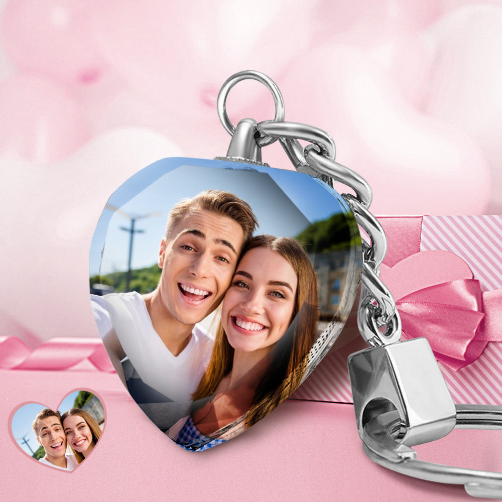 Custom Photo Crystal Keychain Couple Keepake Crystal Keychain Heart Shape Photo Keychain Grandparents Gifts